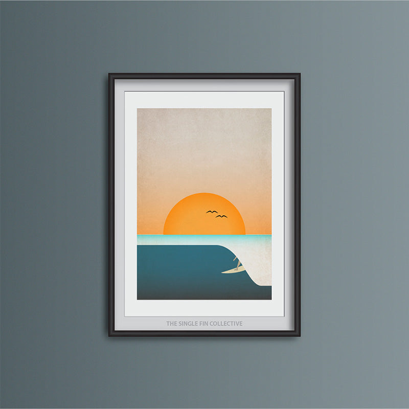 This surf print is simple and striking and we have a few prints available with small marks or imperfections, particularly on the white border which could be covered up with a mount when framed.